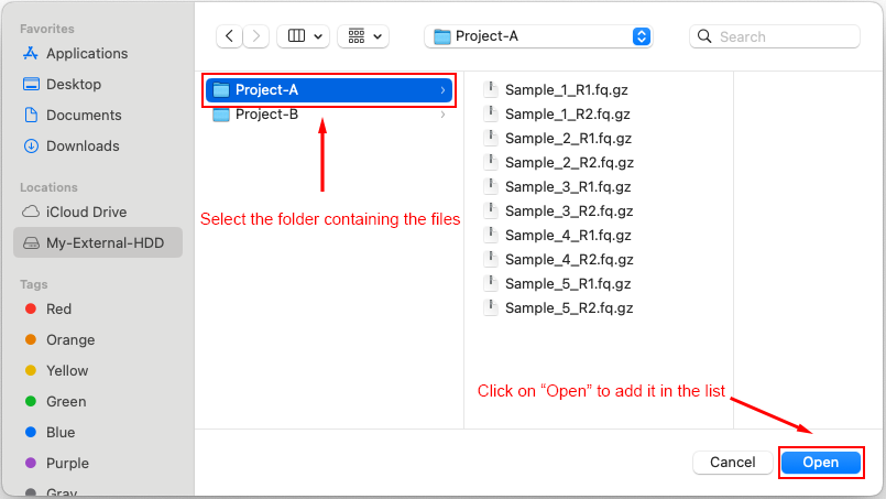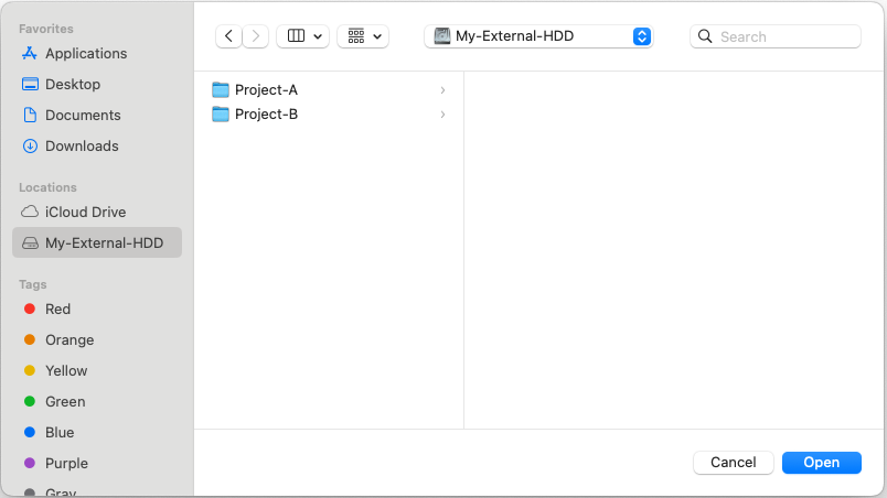 Find the folder to include in the accessible paths (e.g., External Drive)