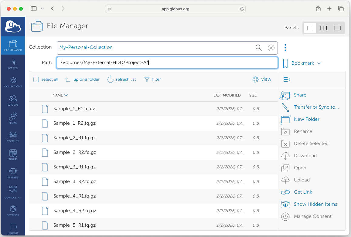 Open the Globus Web App, navigate to your endpoint, and verify that the newly added folder is visible and accessible.