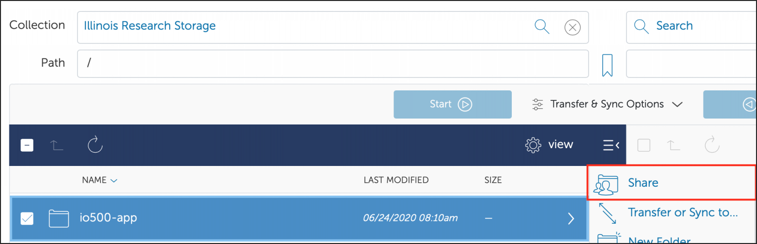 After you have navigated to an endpoint using the Collection search, entering a forward slash ( / ) into the Path field displays the top-level directories you have access to at that endpoint. From there you can navigate to the location you want to transfer to/from. (You can also enter the direct file path into the Path field.)